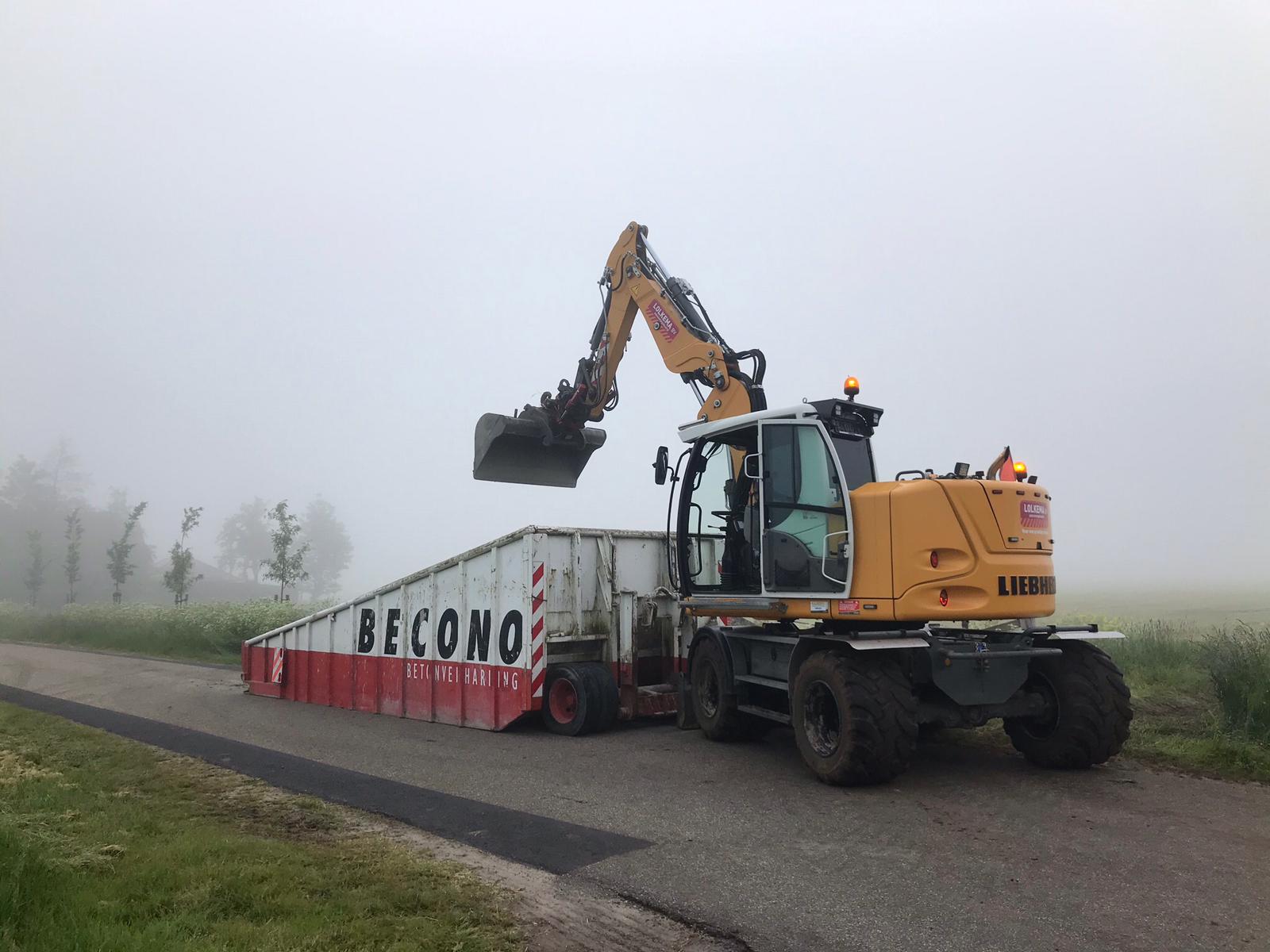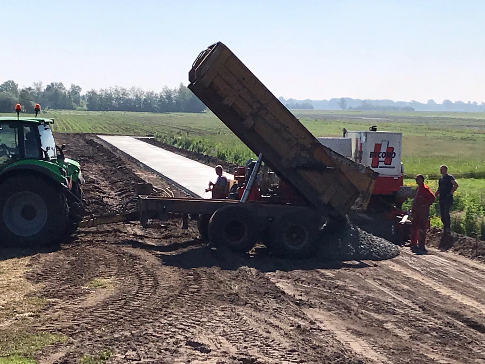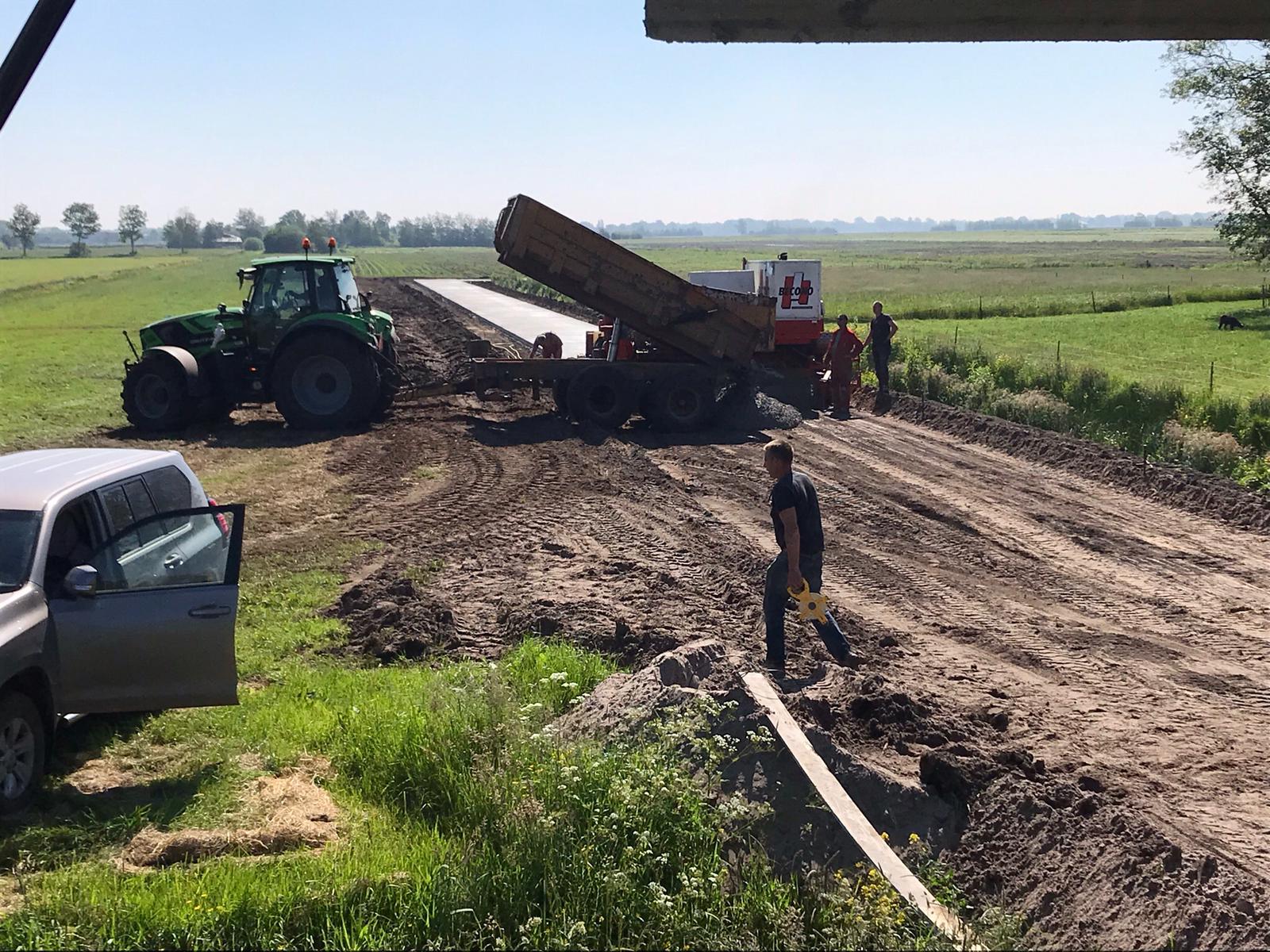 Voor de aanleg van een betonpad in een weiland Van Ginneken aan de