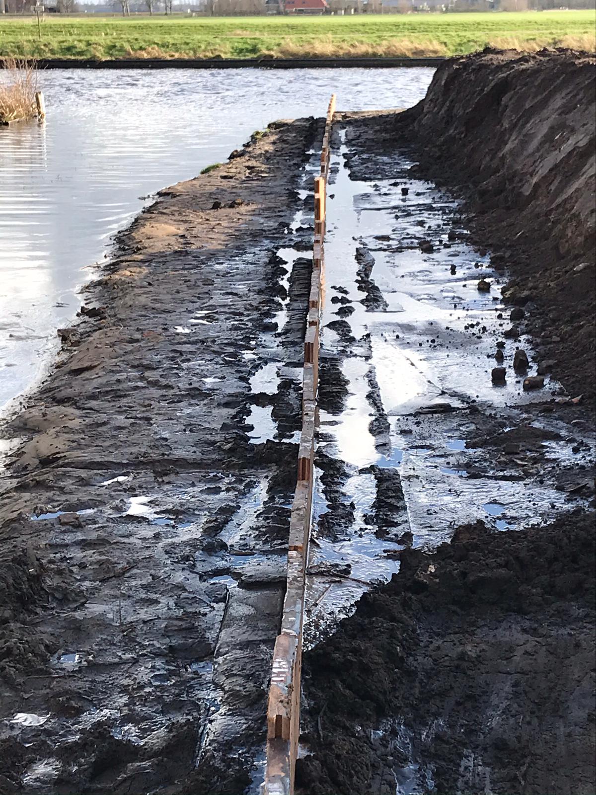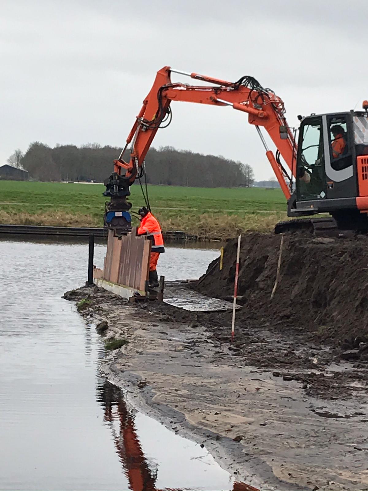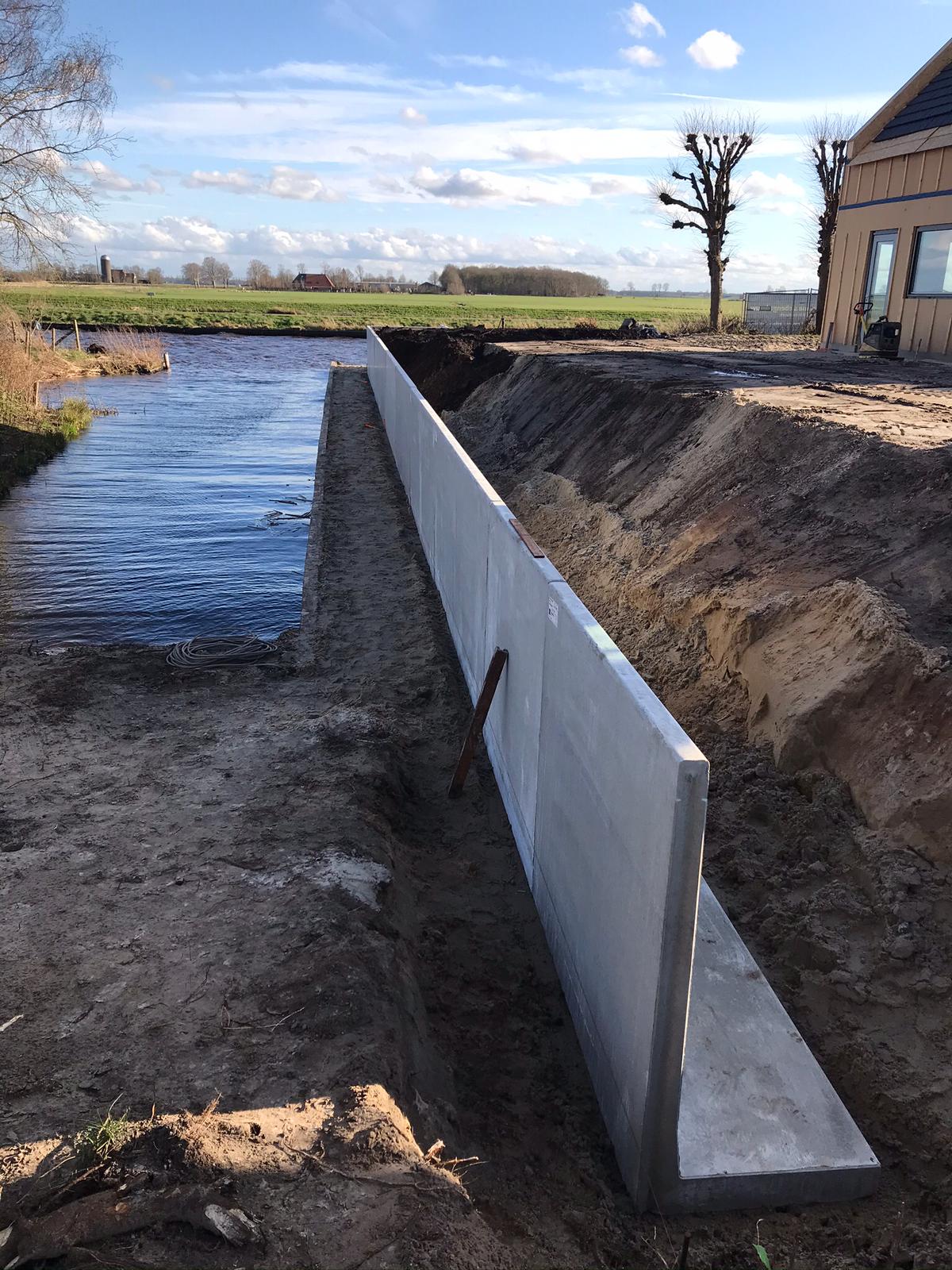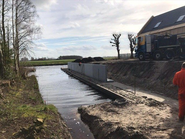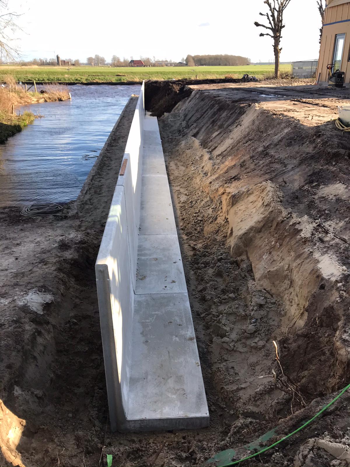 Tjonger by Mildam met de aanleg van betonnen keerwanden,
